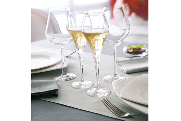Arom Up, gemaakt uit Krysta™️, bevordert de ontwikkeling van weinig of niet houterige, bloemige en fruitige wijnaroma s, dankzij de kamer die de helft van de kelk inneemt. De grote zuurstofoppervlakte garandeert een perfecte ontwikkeling van aromas en het bovenste deel van de kelk is smaller voor een betere concentratie. De degustatie zal beter zijn dan de verwachtingen door de finesse van de drinkrand.