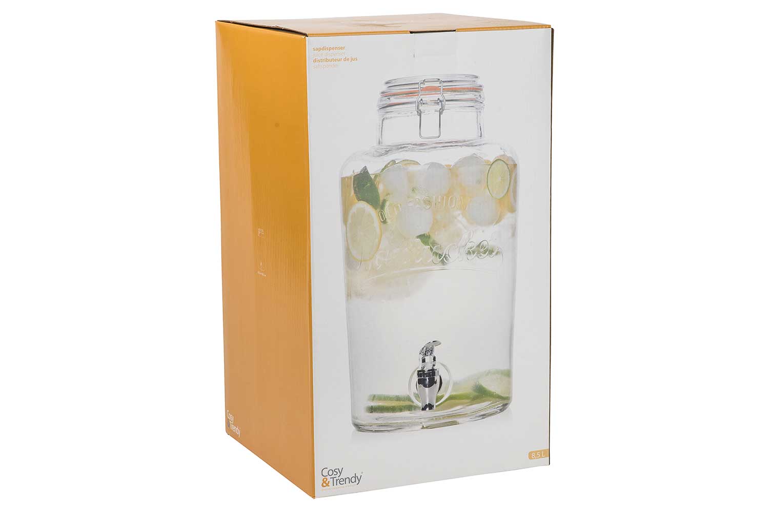 Een grote dispenser in vintage stijl voor allerhande sappen en cocktails. Door de extra ring wordt de dispenser luchtdicht afgesloten, waardoor de smaak van kleurrijke sapjes vol vitamines en mixdranken langer behouden blijft. Plaats je glas onder het kraantje en draai het kraantje open om je glas te vullen met de gewenste hoeveelheid. Geschikt voor dagelijks gebruik bij je thuis binnen en ook geweldig op het terras tijdens een tuinfeest. Reinig de dispensers handmatig.