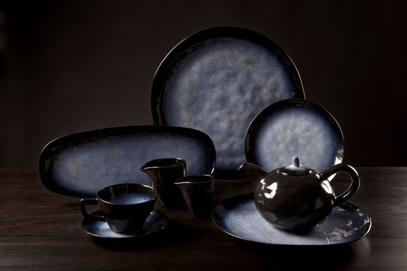 Sapphire, het kostbaar sieraad binnen ons gamma. Een uitgebreide collectie met de kleur van de gelijknamige edelsteen. De diepe tint aan de rand wordt lichter naar het midden toe en zorgt voor een vleugje mysterie, zoals een bepaald ingrediënt veelal voor een gast geheim blijft. Ook de grillige structuur van de steen in zijn ruwe vorm komt terug in het servies. Het materiaal is aardewerk.