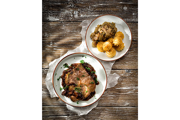 Een collectie in traditionele stijl door de kastanjekleurige contour in combinatie met melkwit porselein en een gespikkeld effect. Sterk en licht porselein, vaatwasserbestendig.